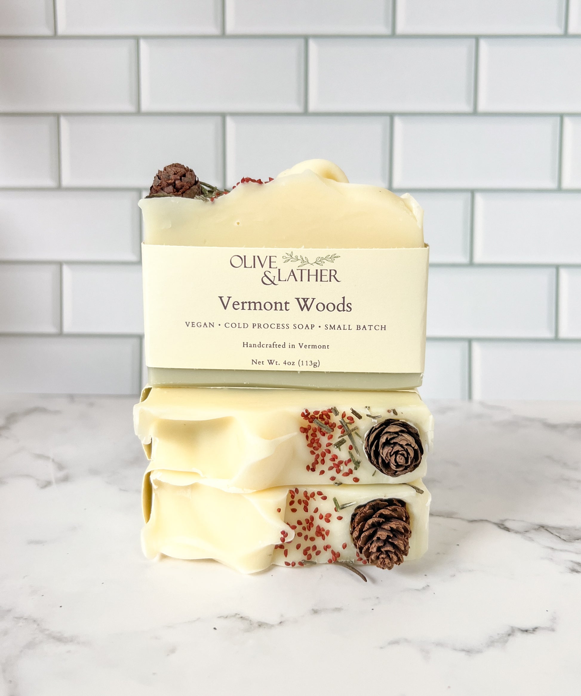 Vermont Woods is scented with a refreshing blend of fir balsam, peppermint & cedarwood essential oils.